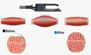 従来のボディスリミングマシンには、脂肪冷却やRF、HIFU (焦点式超音波)等がありますが、それらの技術は共通して 脂肪層を対象にしているため筋組織には作用していません。しかし、美的外見に大きく関与しているのは脂肪ではなく