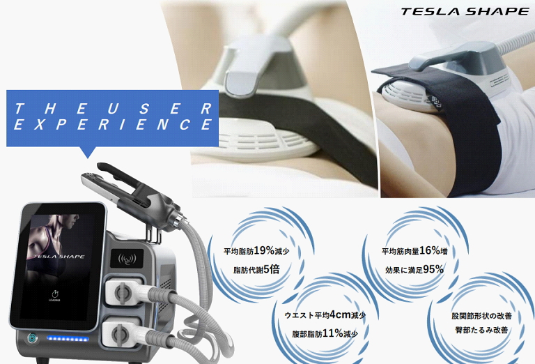 HI-EMTによる新しいアプローチ方法は、火傷や痛みによる 問題もなく、筋線維の成長と皮下脂肪層の減少効果を同時に 引き出す超極大不随意収縮運動を誘発する事が判明しており、筋肉増強と脂肪減少を目的とする全く新しい概念のボディ